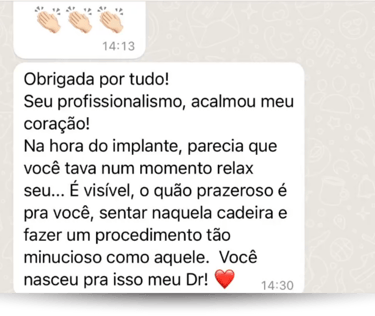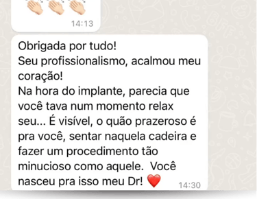 Obrigado por proporcionar uma experiência tão positiva. Recomendo a clínica a todos que buscam um atendimento de qualidade e humanizado.
